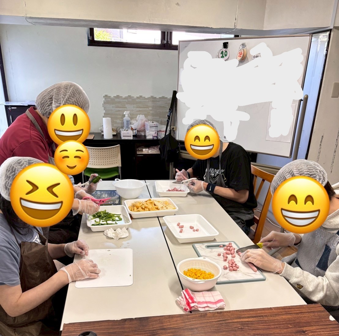 ハサミでソーセージやピーマンなど難しかったけど、頑張って切る事ができました。