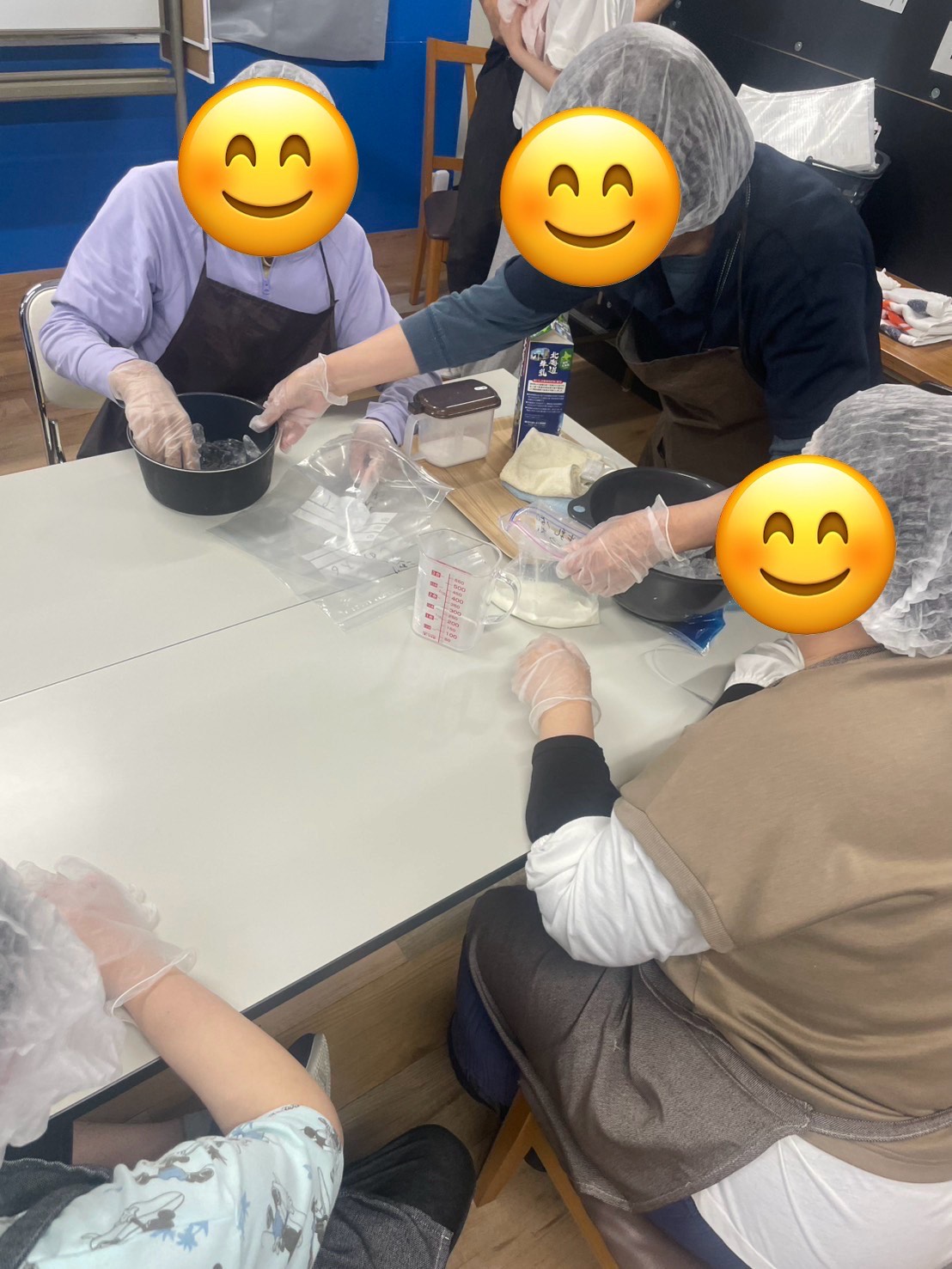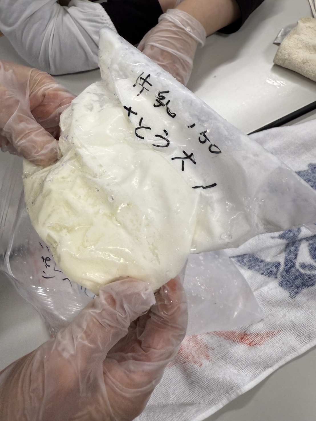固まっていく牛乳にみなさん喜ばれていました。