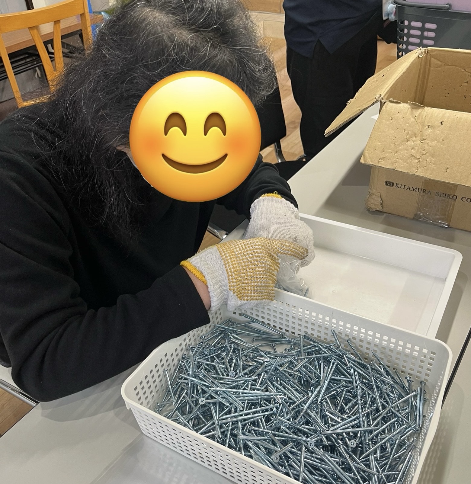 内職はネジを袋に入れたり、計量やシーラーなど利用者さんができることの作業をしています。みなさん頑張って取り組まれています。