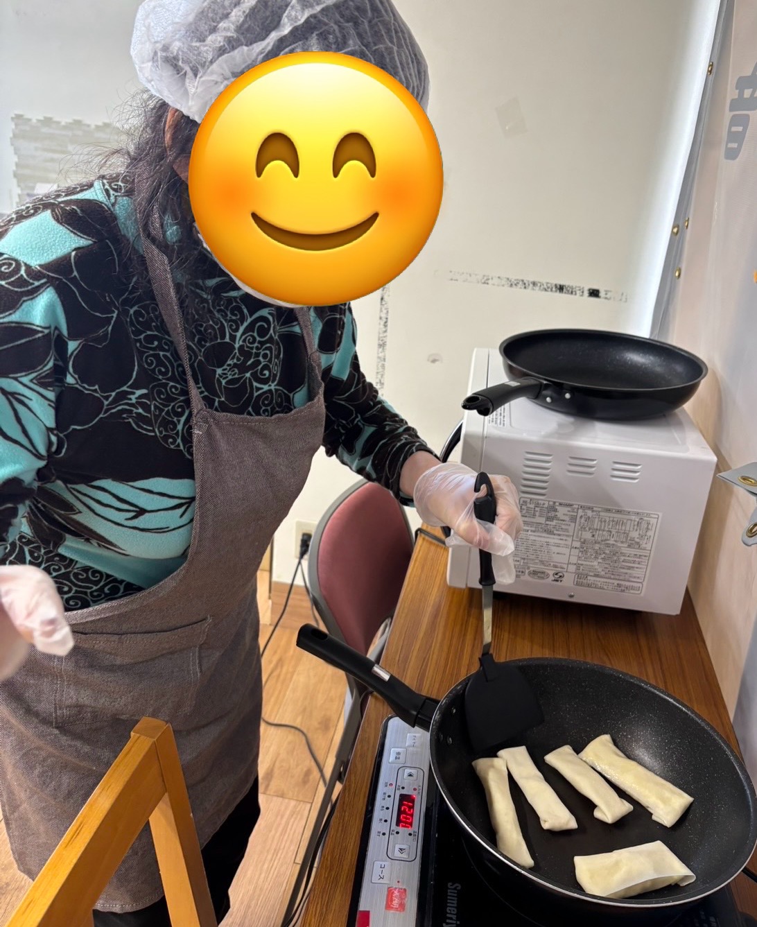 サツマイモをレンジで柔らかくして、牛乳お砂糖を混ぜて潰し、春巻きで巻いて焼きます。