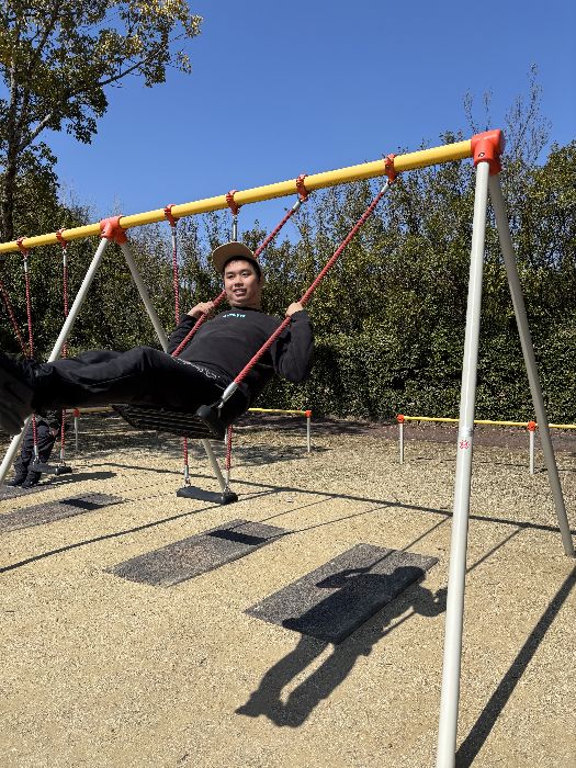近くの公園でブランコをされたり、仲の良い利用者と外の空気を楽しまれてたりしています。